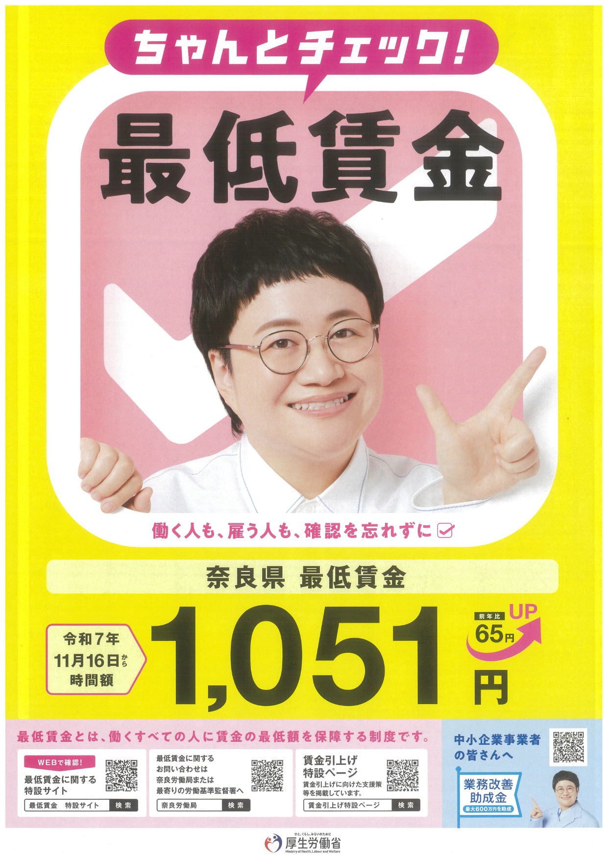 令和7年11月16日から奈良県の最低賃金が上がります!