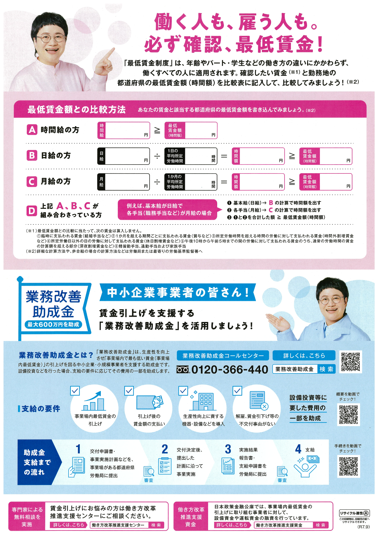 最低賃金変更の詳細に関しては下記チラシ記載のサイトでご確認できます。