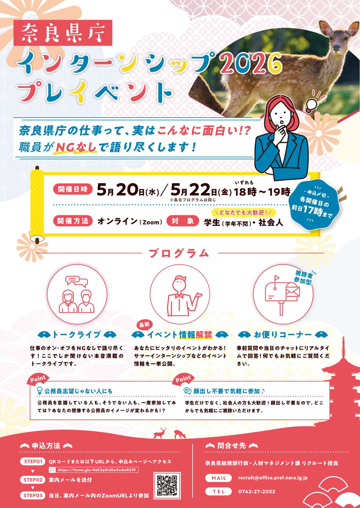 5/20(水)、5/22(金)奈良県庁 インターンシップ2026 プレイベントを開催!